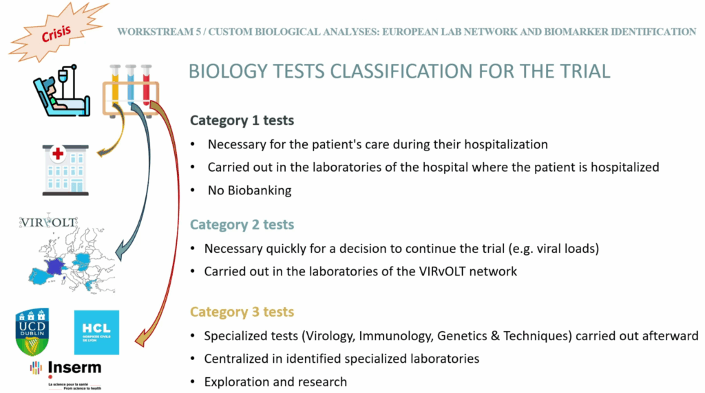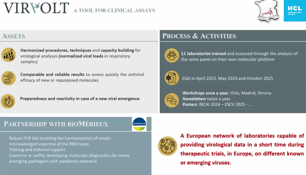 Parallèlement au réseau clinique, VIRvOLT, un réseau européen de laboratoires, collabore étroitement avec les centres de référence et les partenaires spécialisés en diagnostics. Ce réseau est essentiel pour garantir la fiabilité, la comparabilité et la disponibilité rapide des données virologiques générées lors des essais cliniques.